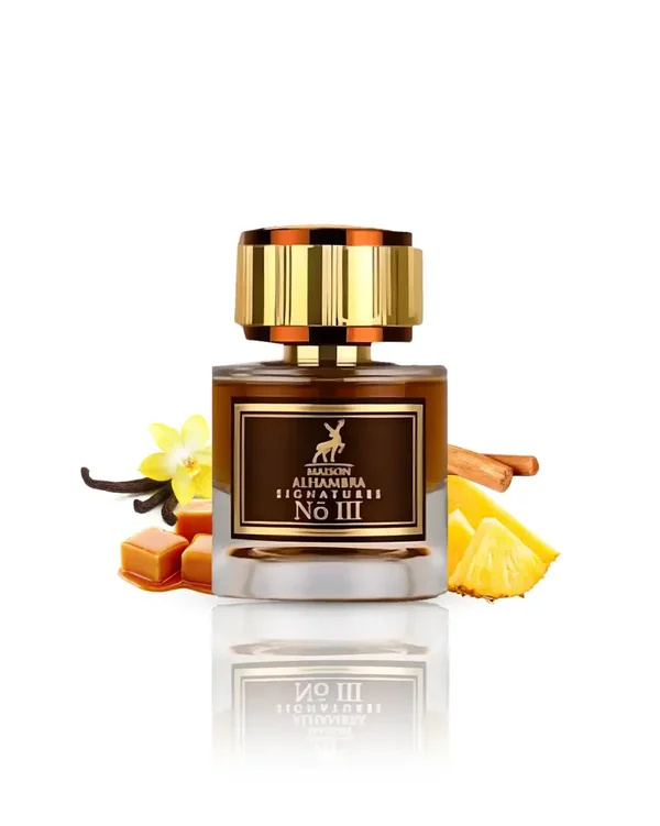 L'Eau de Parfum Signatures NO.III est une fragrance unisexe de la Maison Alhambra qui vous invite à un voyage olfactif gourmand et exotique. Avec ses notes sucrées, fruitées et boisées, ce parfum saura séduire les amateurs de fragrances orientales chaleureuses et envoûtantes.